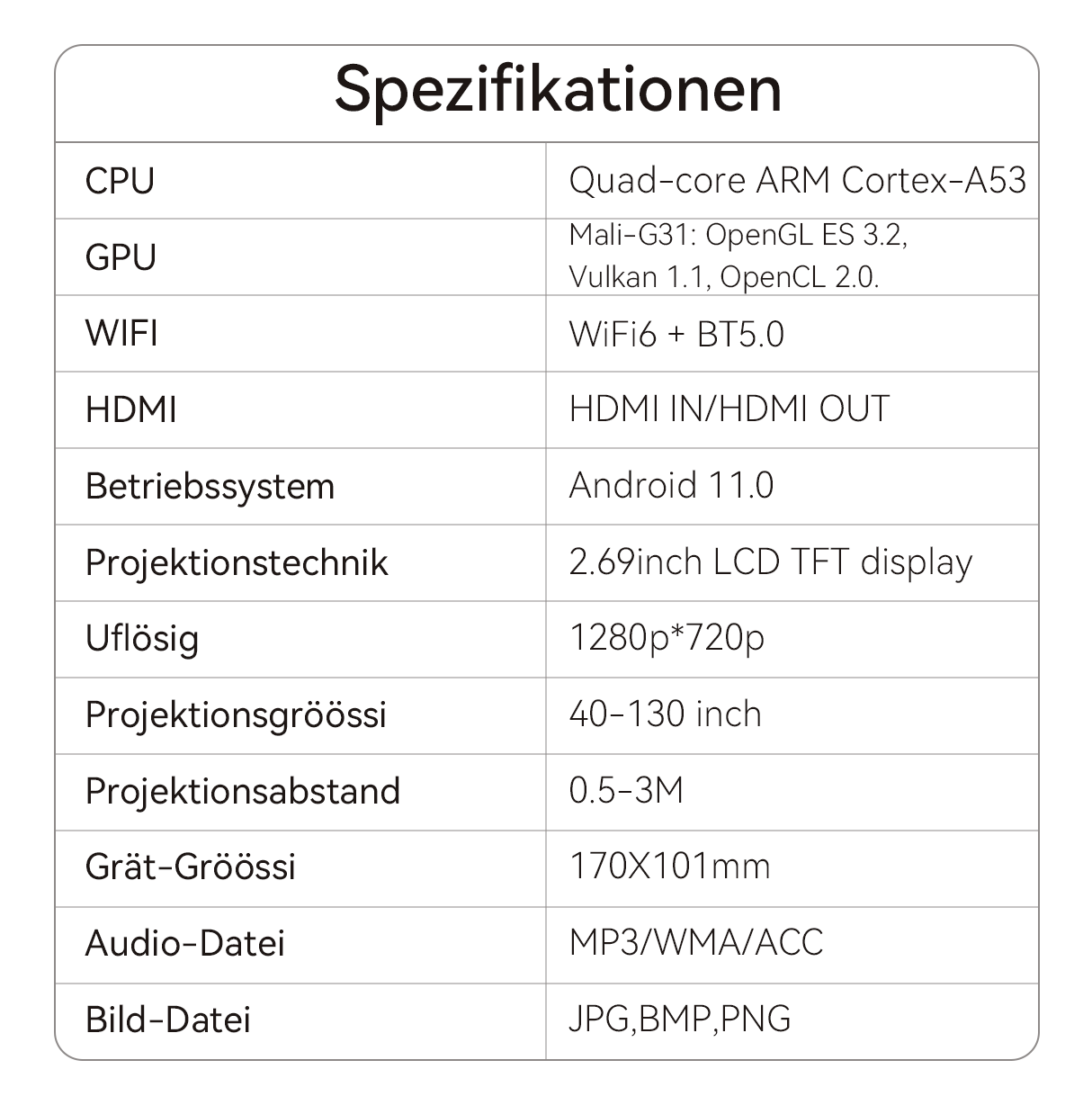 - Auto-Korrektur: Der Projektor richtet das Bild automatisch beim Start aus, sodass die manuelle Einrichtung entfällt.